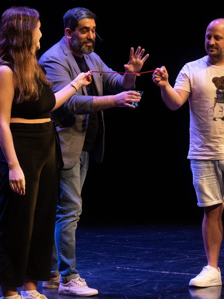 Ofrezco un show central de magia de cerca o una modalidad itinerante, recorriendo el evento mesa por mesa o grupo por grupo. También realizo magia de salón (parlor) como show central para audiencias más amplias.